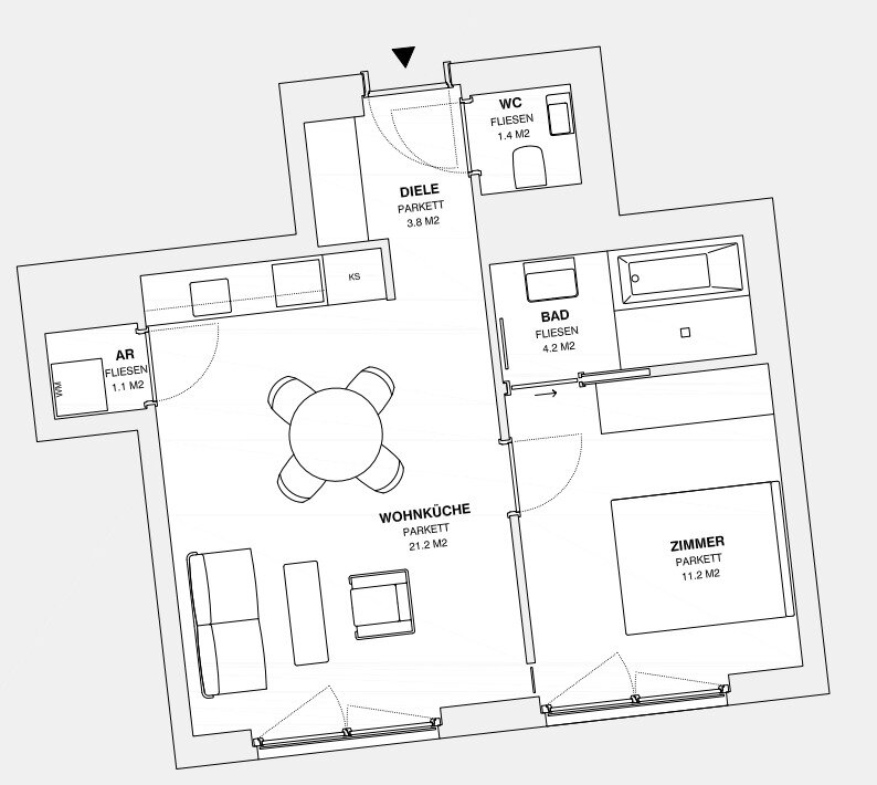 ++ Bei den hier dargestellten Fotos handelt es sich um ähnliche, bereits fertiggestellte Wohnungen des selben Projektentwicklers. Aktuelle Bilder des Projektes MOLLARD50 werden nächste Woche nachgereicht. Der dargestellte Plan/Grundriss ist der der tatsächlichen