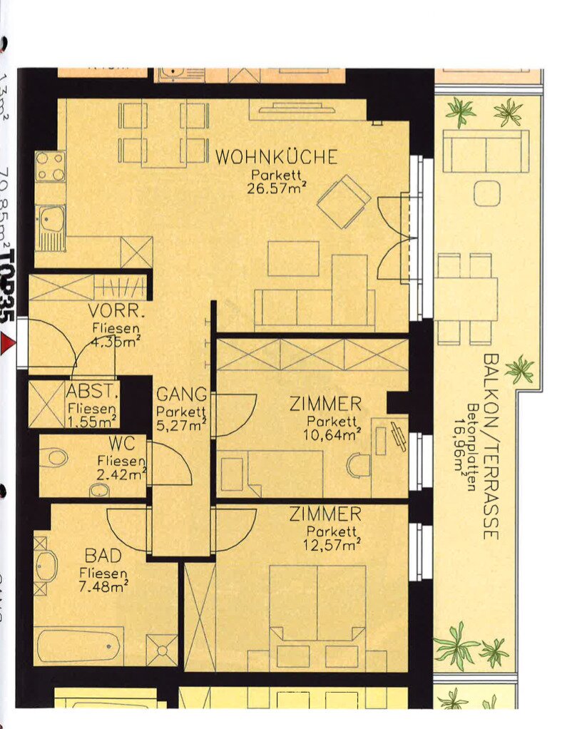 Am Rande von Kierling, umgeben von Grün und dennoch mitten im Leben, wartet diese elegante Wohnung im 2. Stock einer modernen Wohnhausanlage auf neue Bewohner. Mit 71 m² Wohnfläche und einer großzügigen Terrasse über die gesamte Länge der Wohnung (ca. 19 m²) bietet sie ein Zuhause, das Licht, Raum und Lebensfreude vereint.
