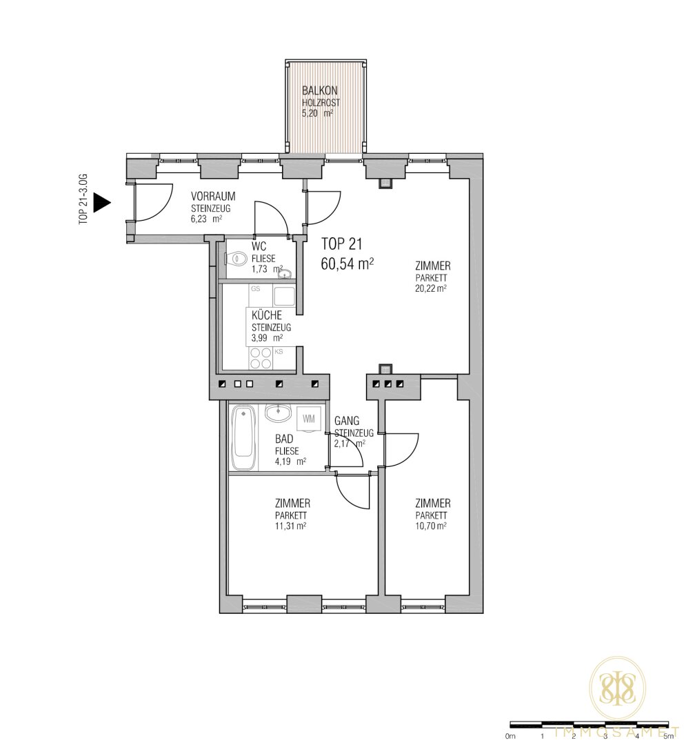 Auf der 3. Etage eines gepflegten Mehrfamilienhauses erwartet Sie eine großzügige Wohnfläche von 60,54 m², die sich ideal für
