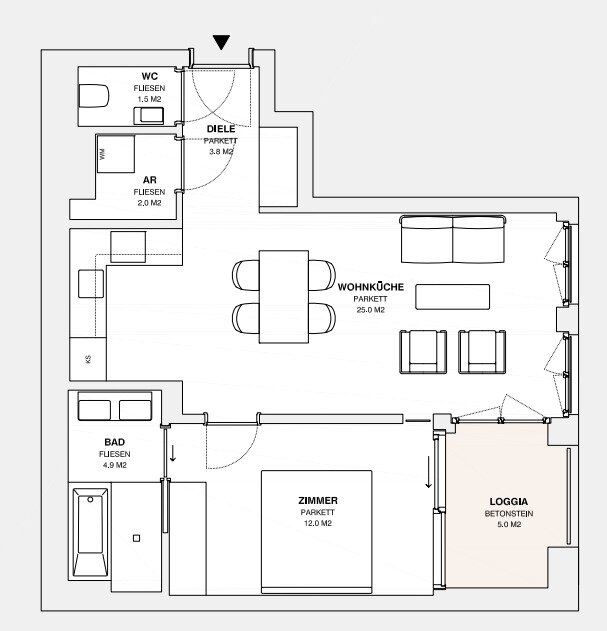++ Bei den hier dargestellten Fotos handelt es sich um ähnliche, bereits fertiggestellte Wohnungen des selben Projektentwicklers. Aktuelle Bilder des Projektes MOLLARD50 werden nächste Woche nachgereicht. Der dargestellte Plan/Grundriss ist der der tatsächlichen