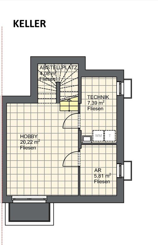 Kellerebene: Hobbyraum+Abstellraum+Technikraum (Vorbereitung