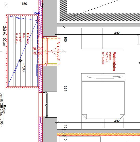 * Bereits bewilligter Balkon (noch nicht errichtet)