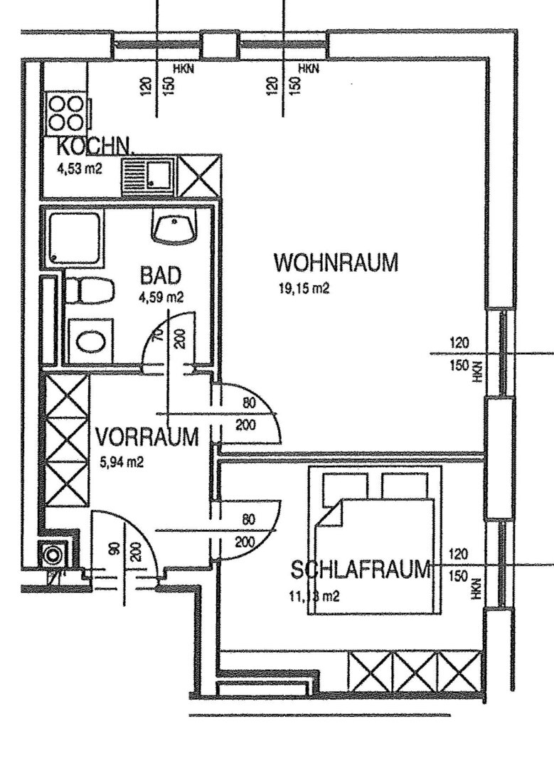 Lage/Mietgegenstand: 2-Zimmer-Wohnung im 1. Obergeschoß (ohne Lift)