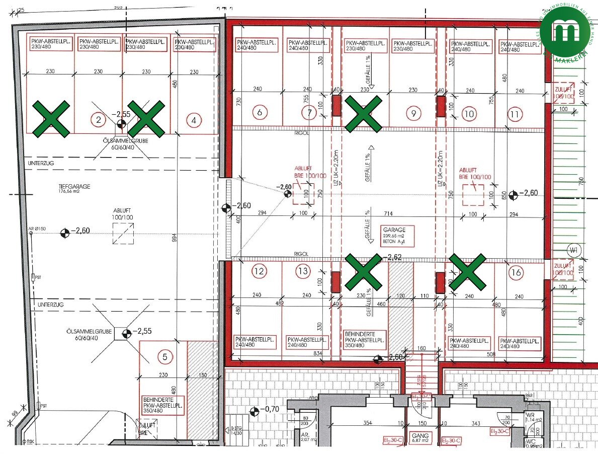 * ein behindertengerechter Parkplatz momentan verfügbar (4,80 x 3,50 m; € 120,- brutto/Monat)