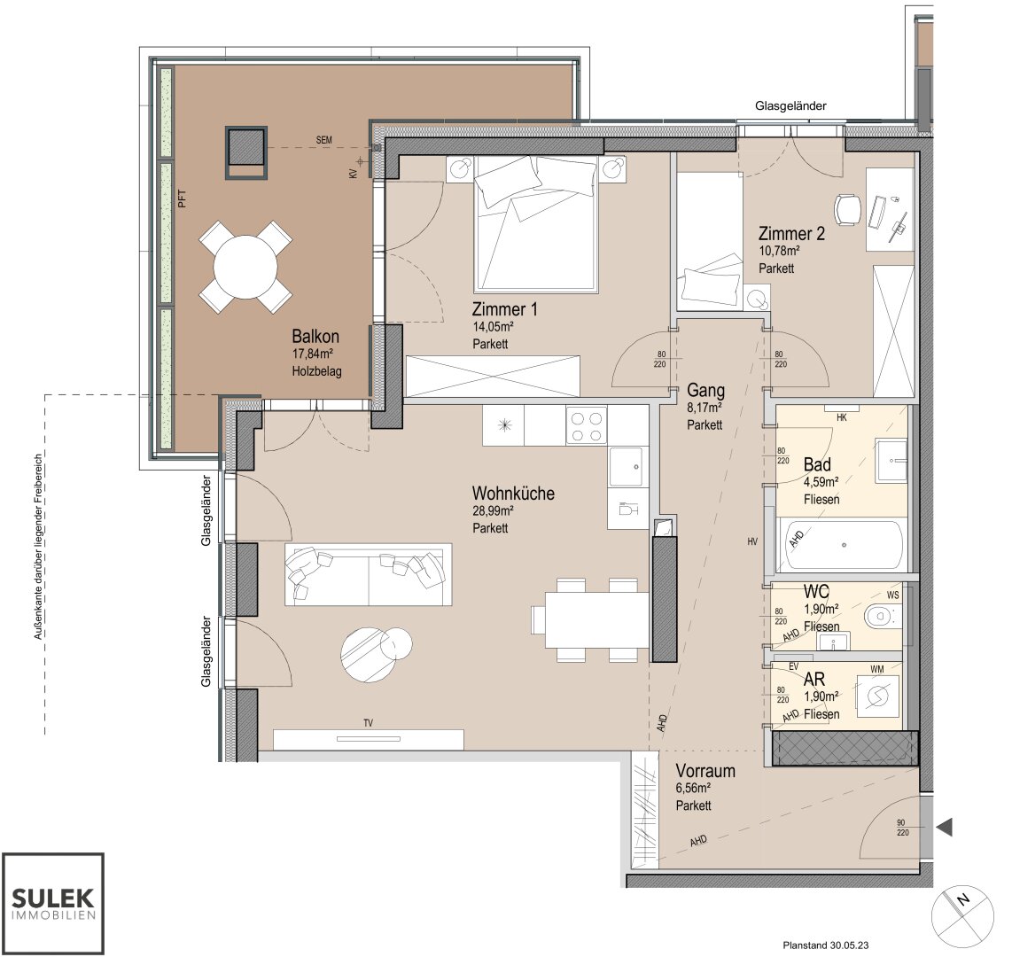 Balkon/Terrassen - Fläche: 17