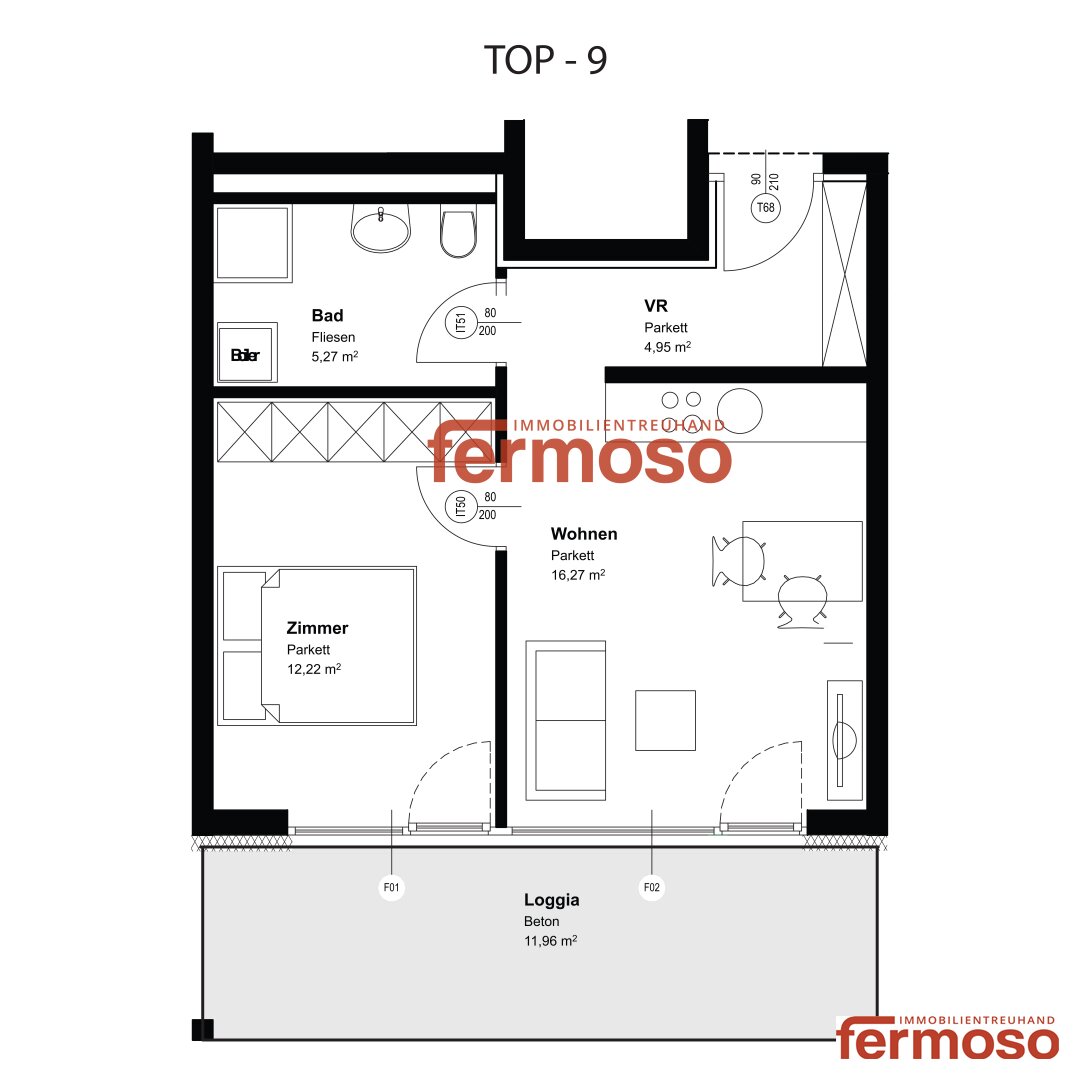 Sie suchen eine moderne Stadtwohnung mit perfekter Raumaufteilung und großzügigem Freiraum? Die Wohnung in der Strauchergasse  bietet Ihnen genau das – auf ca. 38 m² Wohnfläche plus einer fast 12 m² großen Loggia genießen Sie urbanes Wohnen mit Qualität und Komfort.