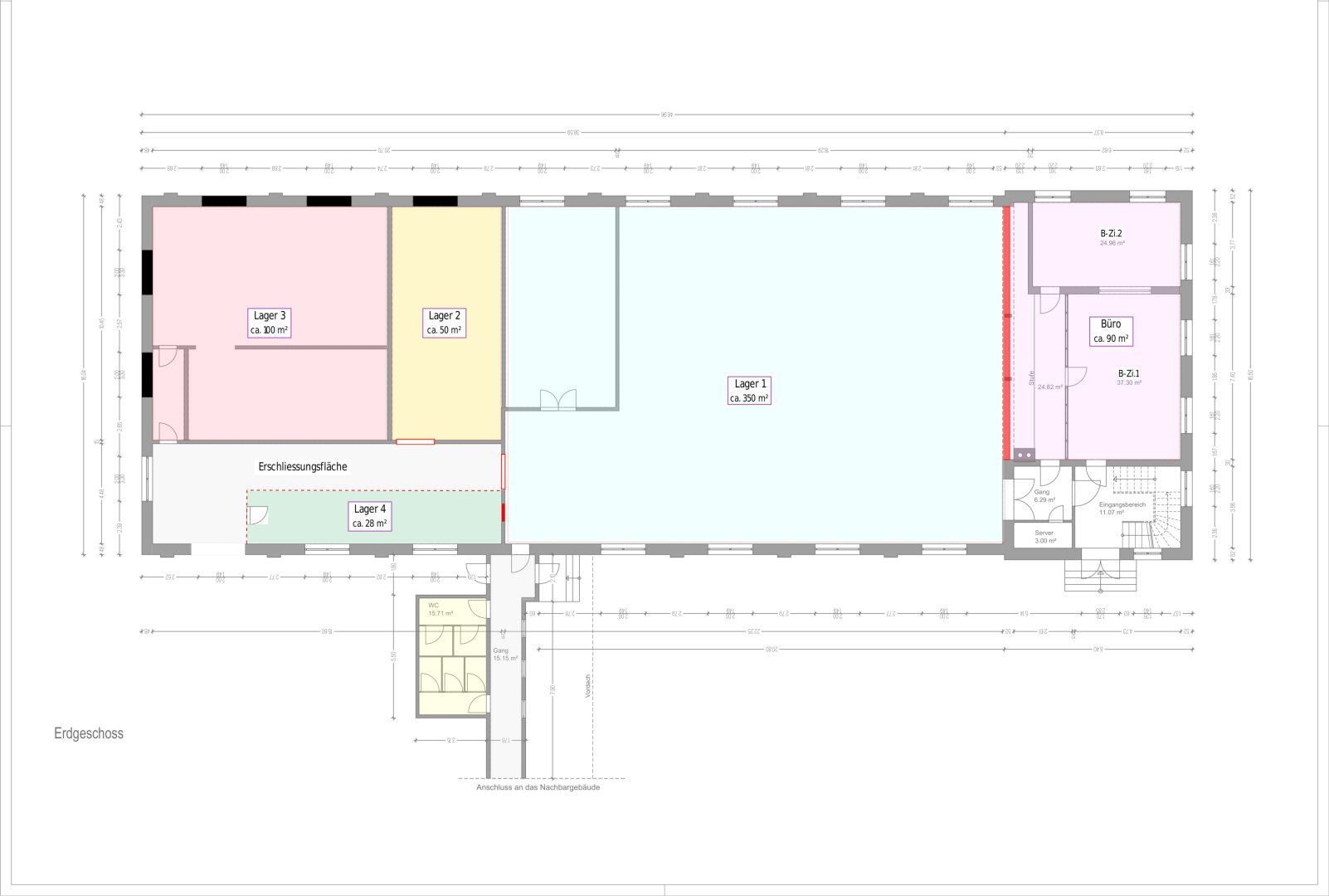Die Fläche kann gesamt oder einzeln wie folgt gemietet werden: