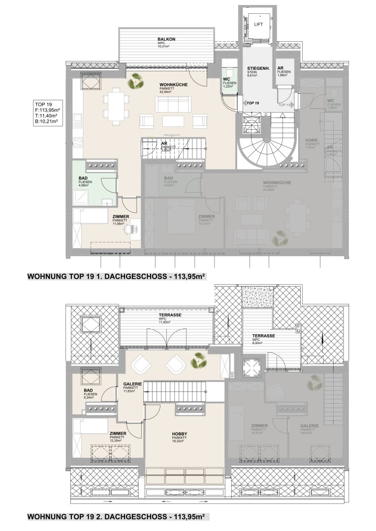 Balkon/Terrassen - Fläche: 21