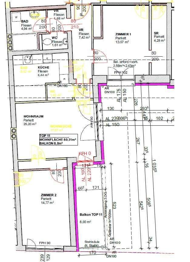 Mit einer großzügigen Fläche von 80,31 m² verteilt auf drei