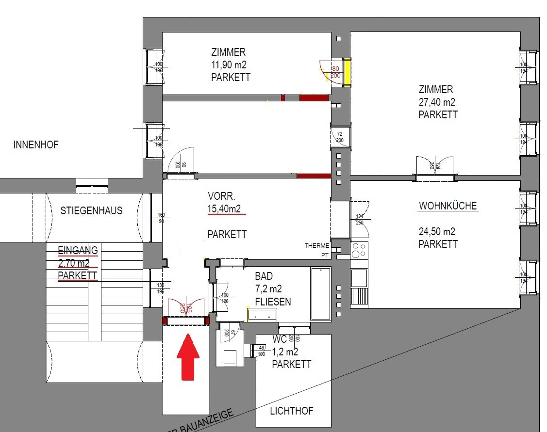 Die Wohnung wurde 2018 aufwändig saniert und befindet sich im 2. Liftstock und verfügt über die typischen Merkmale eines Wiener Altbaus: massive Parkettböden und hohe Decken.