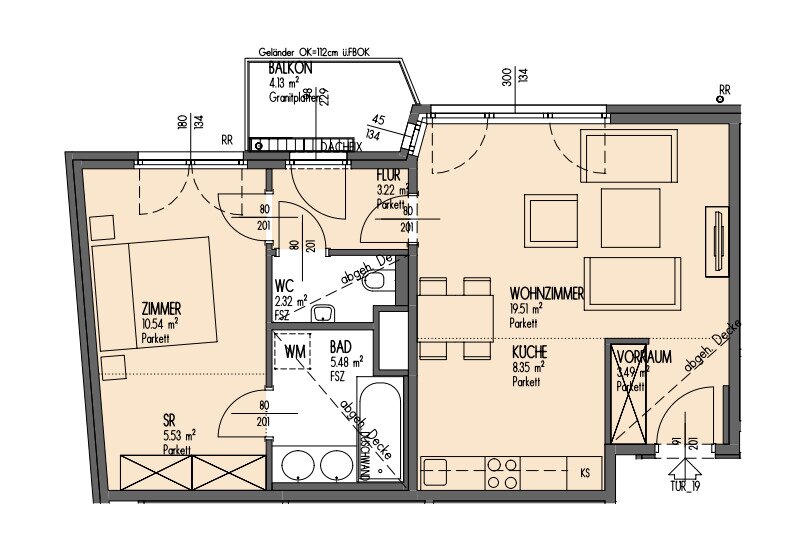 Top 19: Diese wunderschöne 58m² große Neubauwohnung gliedert sich in einen großzügigen Wohnbereich mit Einbauküche, einen Flur mit Ausgang