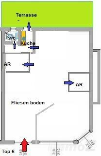Portallokal: Im Geschäftslokal befinden sich abgetrennte 2 Lagerräume, Abstellraum, WC mit Waschbecken, möblierte Kleinküche mit Ausgang auf die hofseitige Terrasse. Ein Parkplatz ist im Mietpreis enthalten. Klimaanlage ist vorbereitet.