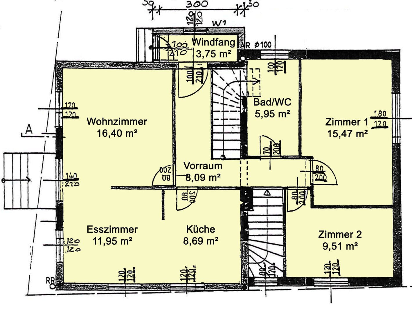 Das Wohnhaus wurde ursprünglich 1958 in Ziegelmassivbauweise (25 cm Hohlblock) errichtet; im älteren Gebäudeteil sind die Küche sowie der offene Wohn- und Essbereich untergebracht. Im Jahre 1995 folgte an der Ostseite ein zweigeschoßiger Zubau, ebenfalls in Ziegelbauweise (30 cm Ziegel mit zusätzlich 5 cm Vollwärmeschutz): Im Erdgeschoss finden sich Vorraum,