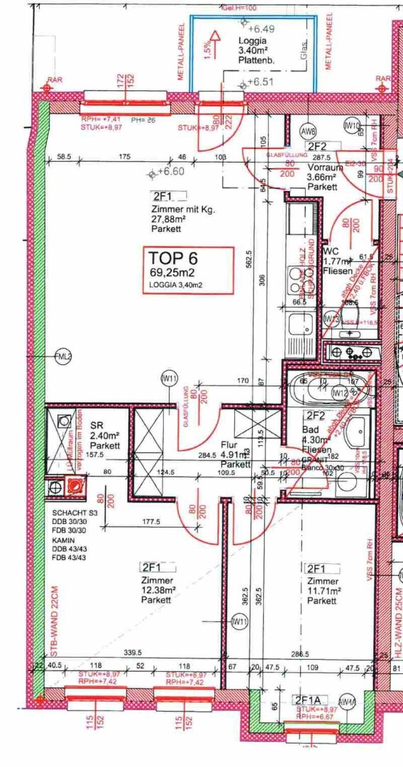 Ebenso wurde das Dachgeschoss ausgebaut, zur Vermietung gelangt diese schöne sonnige Wohnung im 2. Liftstock und einer Loggia von 3,4 m².