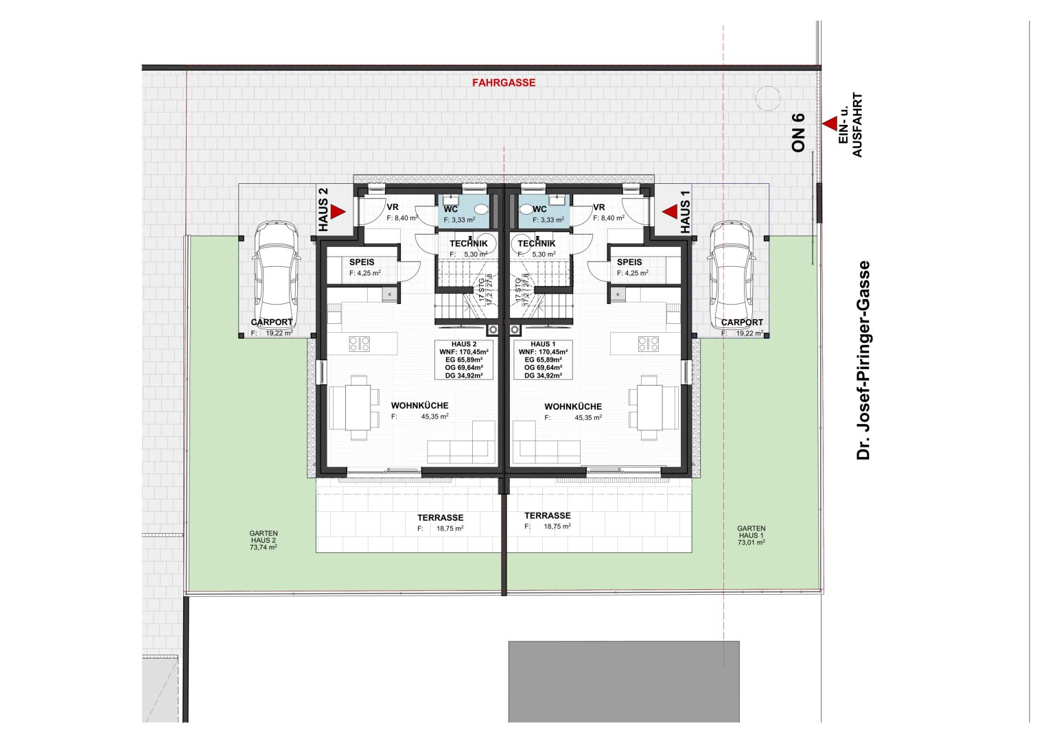 Zum Verkauf gelangen zwei traumhaft geplante Doppelhaushälften mit Eigengärten und Terrassen in Bestlage von Gerasdorf.