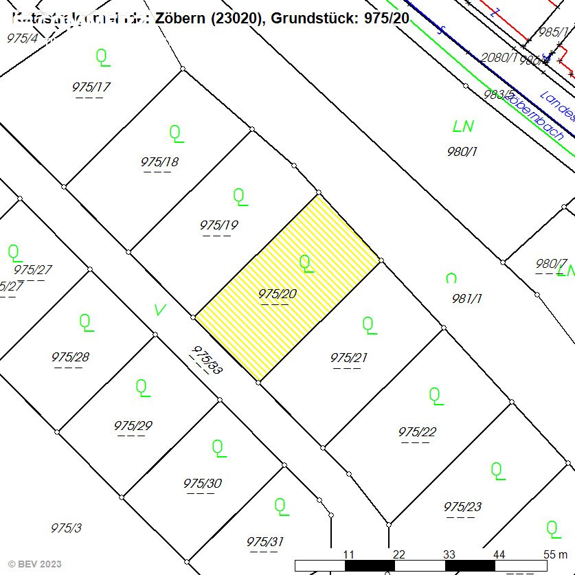 Das Grundstück weist die Widmung Bauland-Wohngebiet (ca. 570 m²) und Grünland-Grüngürtel (ca. 194 m²) auf, die Gesamtfläche beträgt ca. 764 m².