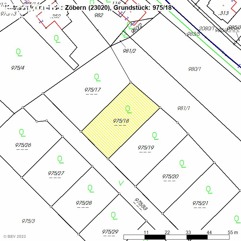 Das Grundstück weist die Widmung Bauland-Wohngebiet (ca. 578 m²) und Grünland Grüngürtel (ca.168 m²) auf, die Gesamtfläche beträgt ca. 746 m².