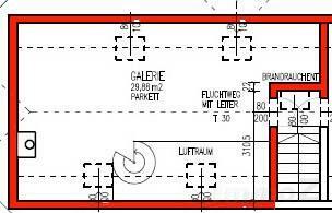 Die Wohnung besteht aus Vorraum, Badezimmer mit Wanne, WC, Schlafzimmer und einem Wohn-Esszimmer mit offener Küche und Aufgang in die Galerie mit Bad und WC. Im Haus befinden sich im Keller und im EG ein Gastronomiebetrieb. Im Innenhof gibt es einen Gastgarten. Ein Büroaufwand von 150 Euro muss an die