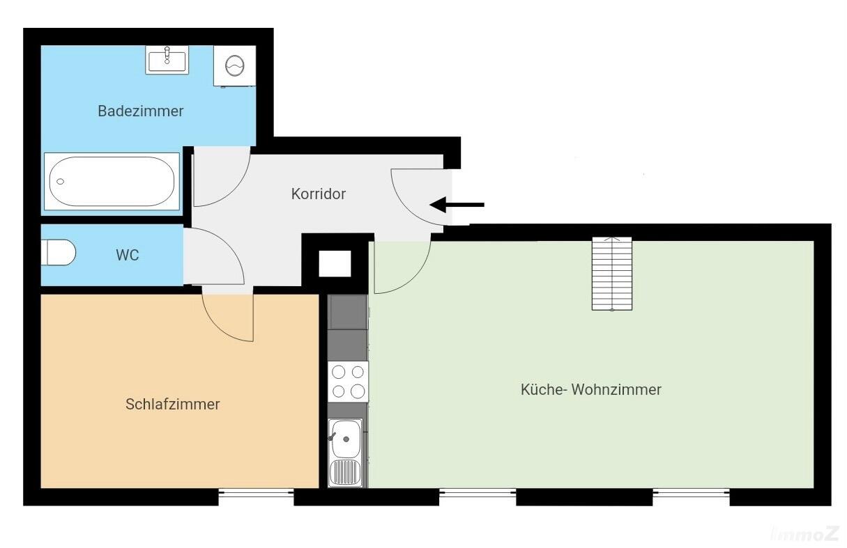 Die 69,47 m² große 3-Zimmer-Wohnung eines gepflegten Gebäudes überzeugt durch ihre Ausstattung und den besonderen Grundriss. Die Wohnung besteht im 2. OG aus Vorraum, Badezimmer mit Wanne, separates WC, Schlafzimmer und einem Wohn-Esszimmer mit offener Küche. Vom Wohnzimmer gelangt man in das 3. OG – in das lichtdurchflutete Galeriezimmer mit