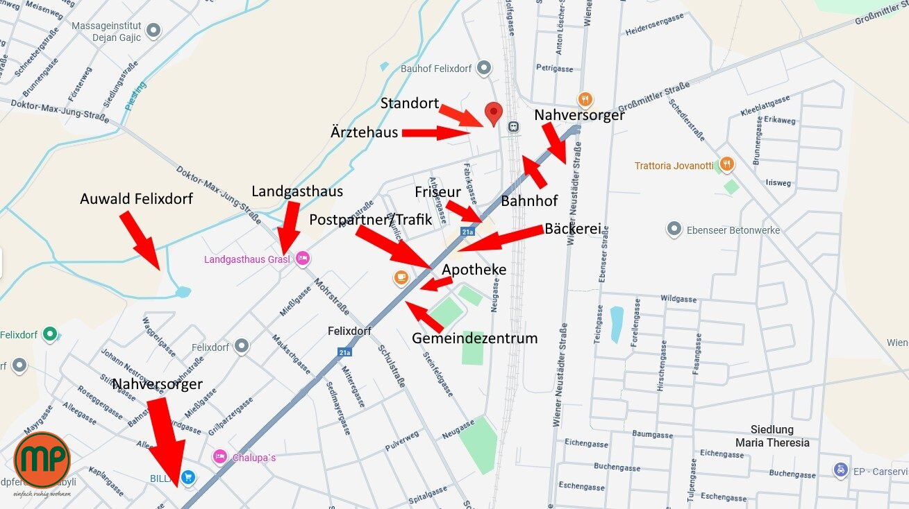 In der aufblühenden Gemeinde Felixdorf im südlichen Niederösterreich befindet sich dieses schmucke und massive Reihenhaus samt Garten und Autoabstellplatz. Die Südbahnstation befindet sich nur wenige Gehminuten entfernt. Per Bahn könnte man hier nicht besser angebunden sein: mit dem REX 1 geht es im Halben-Stunden-Takt ins nahe Wiener Neustadt
