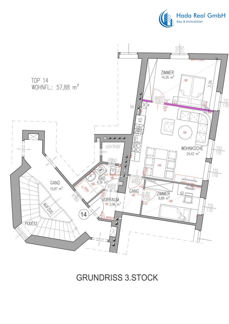 Hier wohnen Sie in toller Lage nahe dem Kurpark Oberlaa, dem Bömischem Prater und erstklassiger Infrastruktur: alles für den täglichen Bedarf befindet