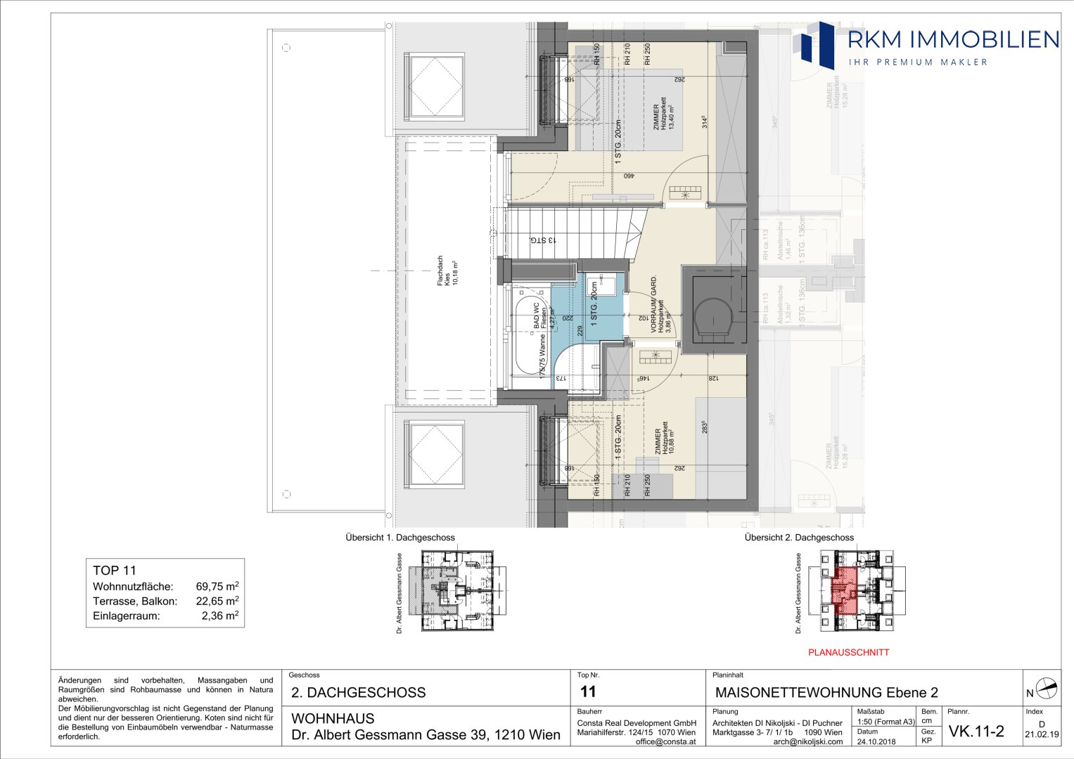 MODERNE UND LICHTDURCHFLUTETE DG-MAISONETTE MIT CA. 23 M² TERRASSE & TG-STELLPLATZ | CA. 70 M² | 1210 WIEN