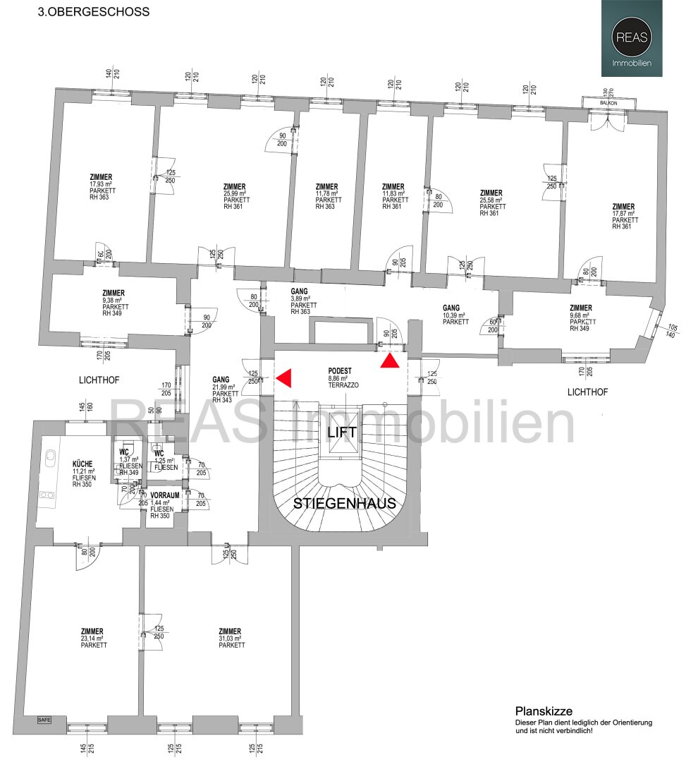 Das Büro befindet sich in einem wunderschönen und bestens gepflegten Altbau im 3. Stock (mit Lift).