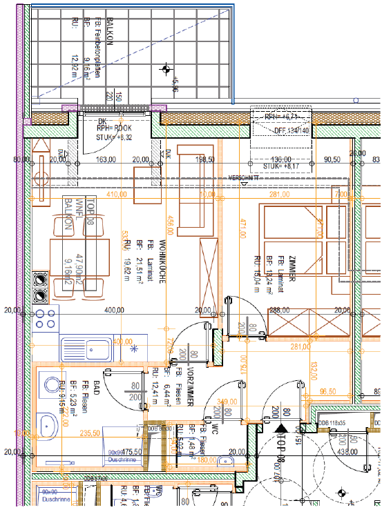 Sie betreten die Wohnung durch ein geräumiges Vorzimmer, von dem aus alle Räume separat zugänglich sind. Auf der