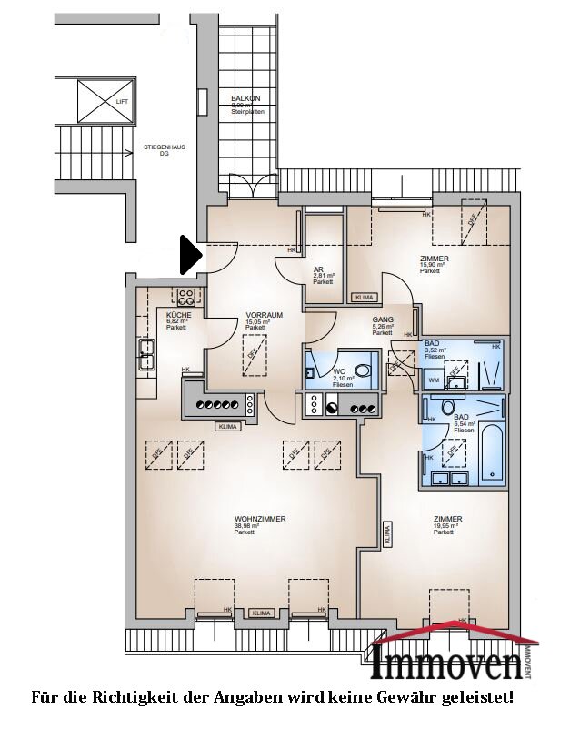Die schöne 3-Zimmerwohnung befindet im Dachgeschoss (mit Lift) und bietet neben einen besonderen Wohnkomfort, eine Wohnfläche von ca. 122 m² Nutzfläche (inkl. Balkon).