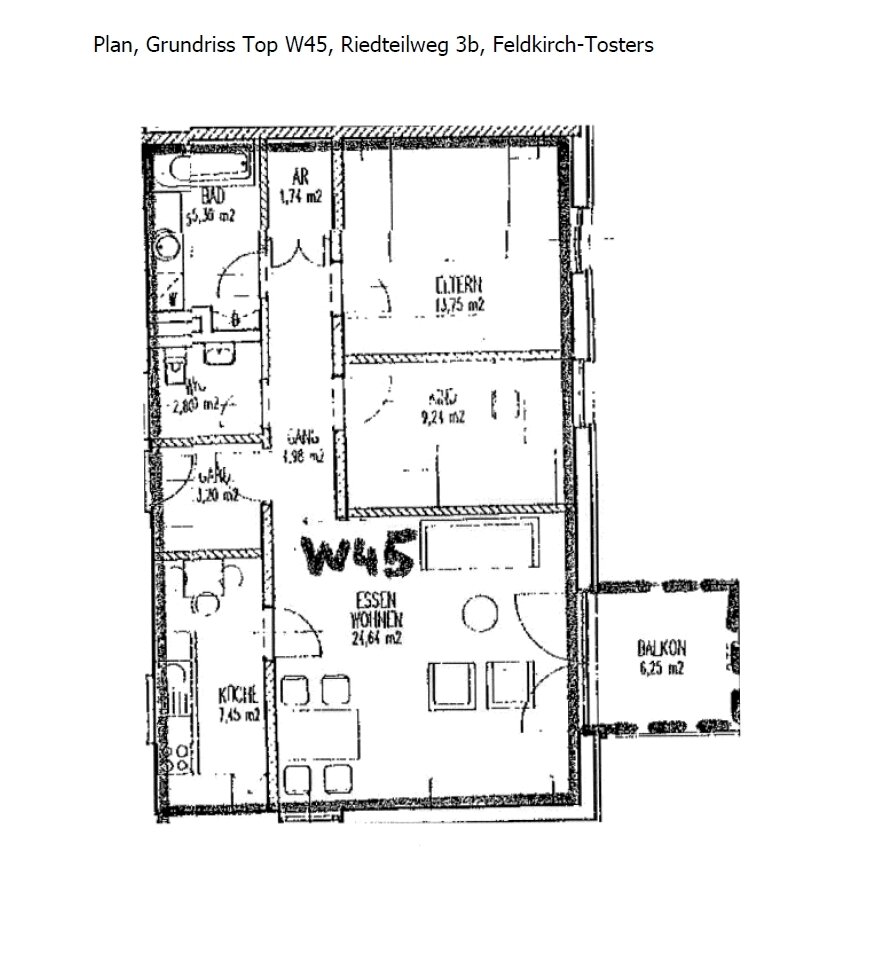 Im Riedteilweg 3b in Feldkirch-Tosters erwartet Sie eine charmante 3-Zimmerwohnung mit rund 75 m² Wohnfläche, die durch ihren tollen Grundriss und eine angenehme Wohnatmosphäre überzeugt. Der offene Wohn- und Essbereich bildet das Herzstück der Wohnung und bietet Zugang zum
