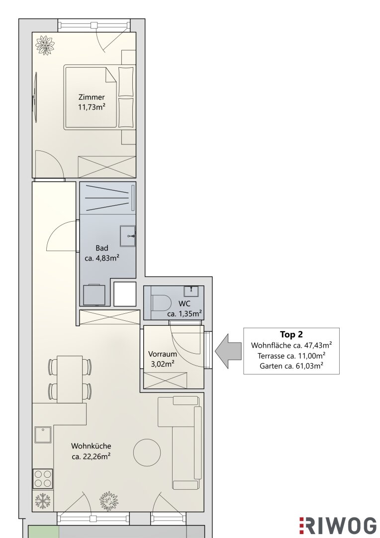 Das Projekt überzeugt durch seine ruhige, aber bestens angebundene Lage im beliebten 23. Bezirk. Nur wenige Minuten zu Fuß trennen Sie von S-Bahn- und Busstationen in Liesing, wodurch sowohl die Wiener Innenstadt als auch das Umland schnell erreichbar sind. Einkaufsmöglichkeiten wie das Riverside-Center, Supermärkte und Lokale befinden sich in unmittelbarer