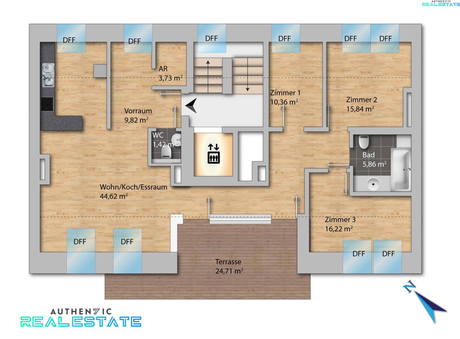 Perfekt konzipierte 3-Zimmer-Wohnung in zent...