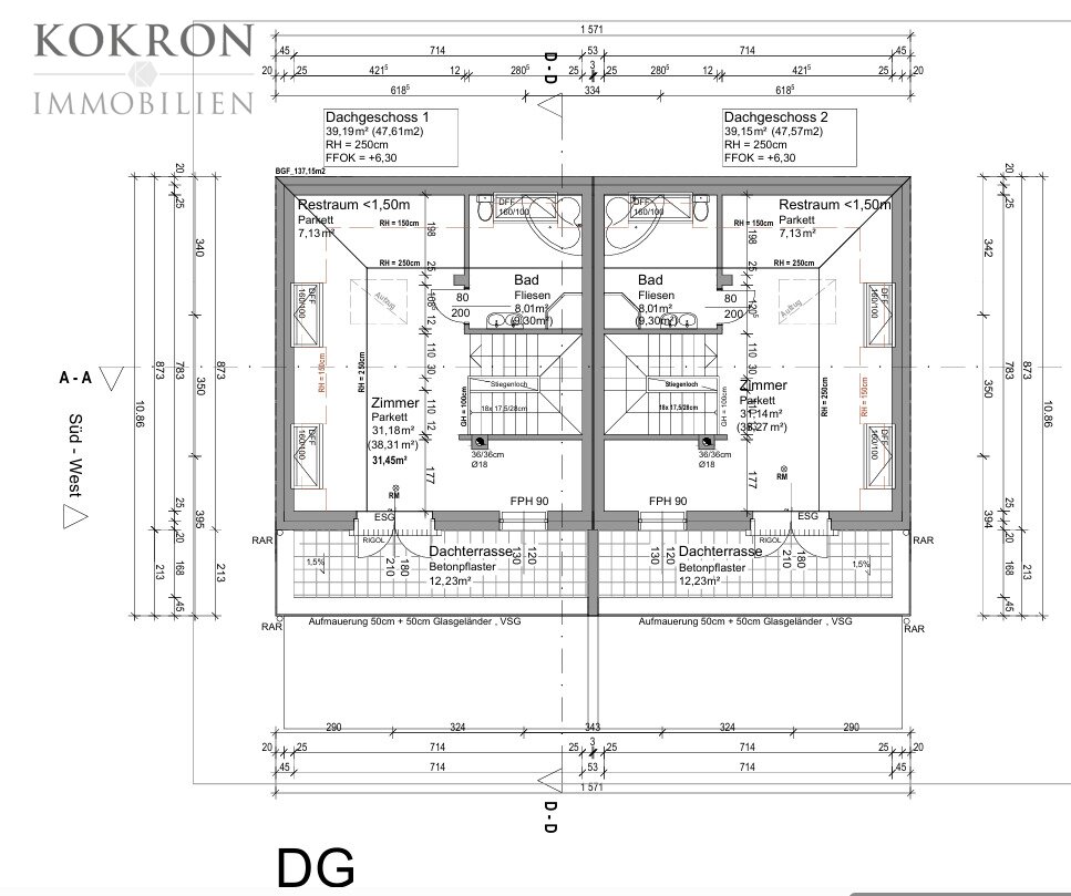 Balkon/Terrassen - Fläche: 54