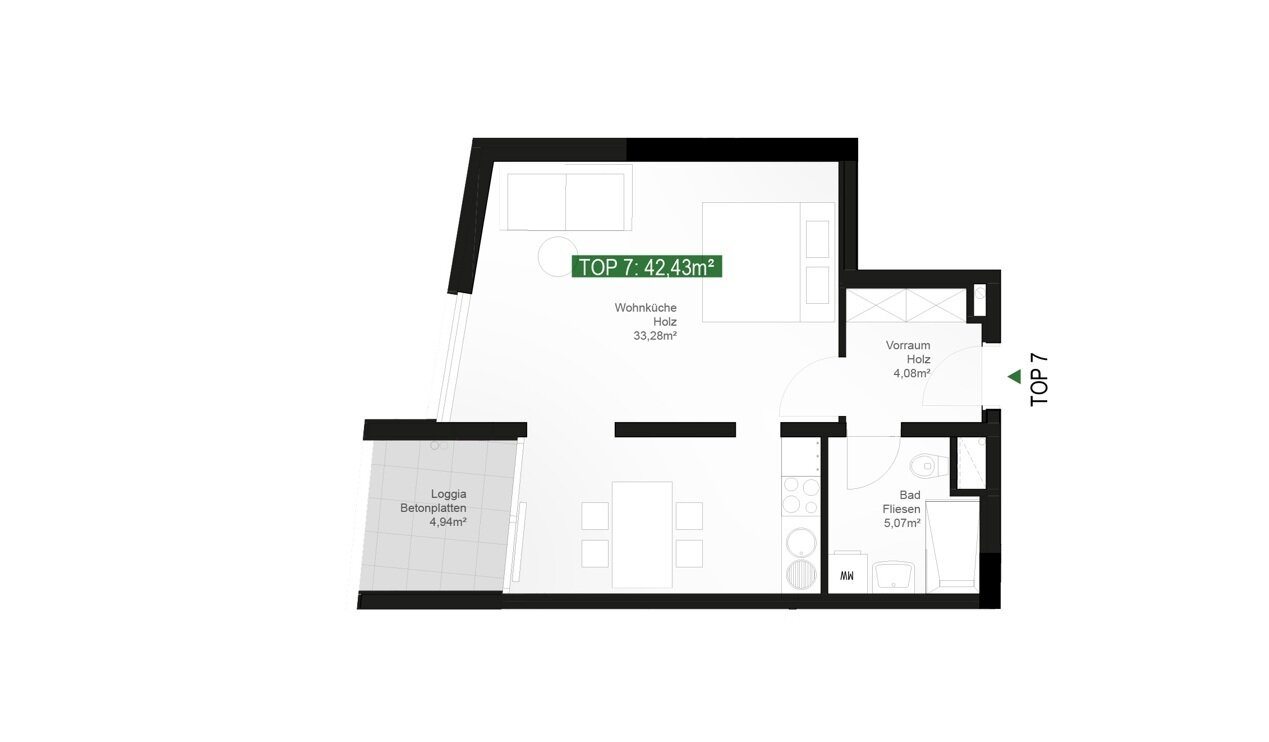 Die hochwertige Ausstattung umfasst edle Parkettböden, Fußbodenheizung, moderne Sanitäreinrichtungen, stilvolle Fliesen sowie eine energieeffiziente Bauweise. Die durchdachte Raumaufteilung schafft ein perfektes Zuhause für Singles oder Paare.