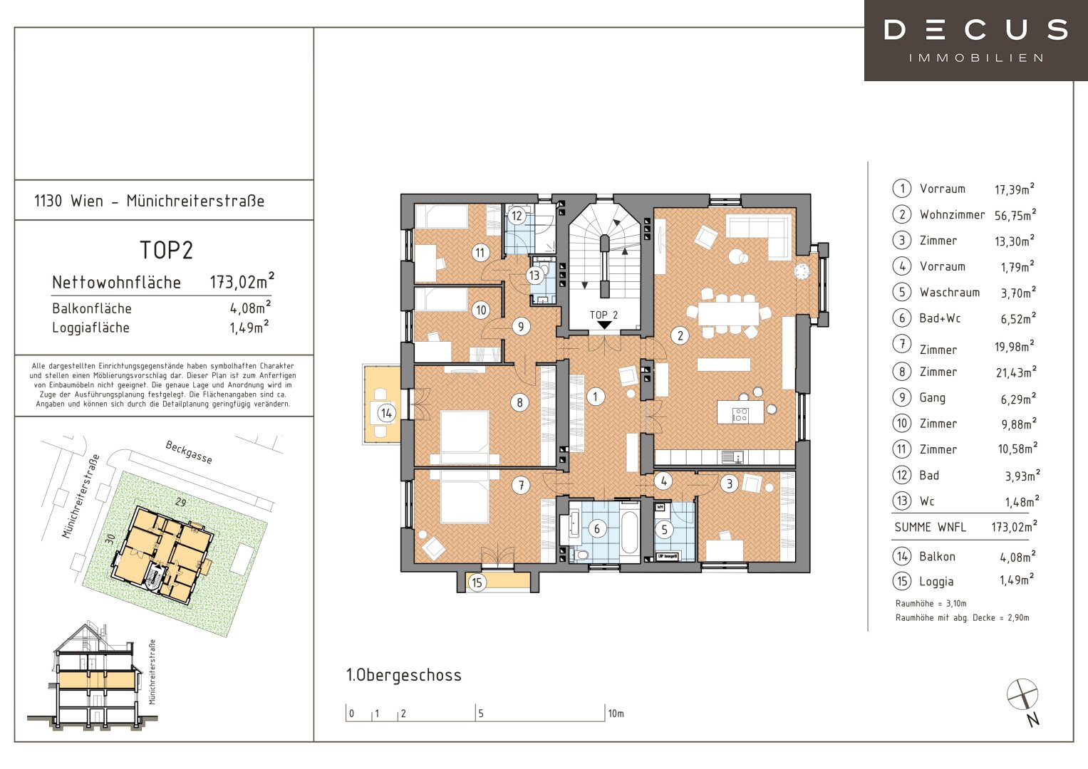 Diese großzügige Wohnung mit einer Wohnfläche von 173,02 m² erstreckt sich über eine gesamte Etage und bietet ein durchdachtes, lichtdurchflutetes Raumkonzept mit idealer Aufteilung: