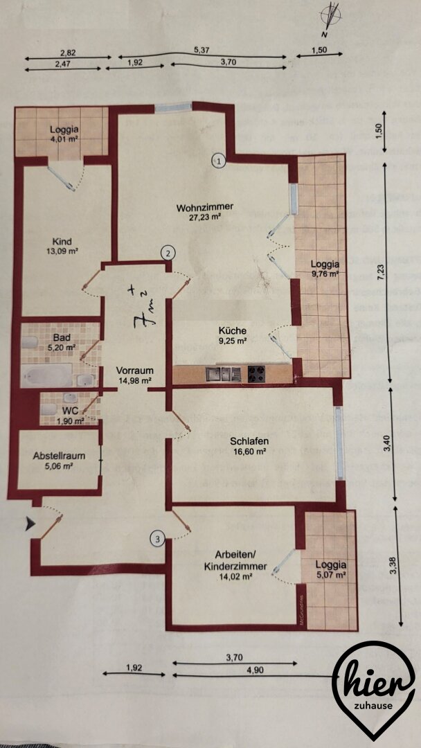 Nähe ORF Park 4-Zimmer Wohnung, 3 Loggien, 1 TG-Platz