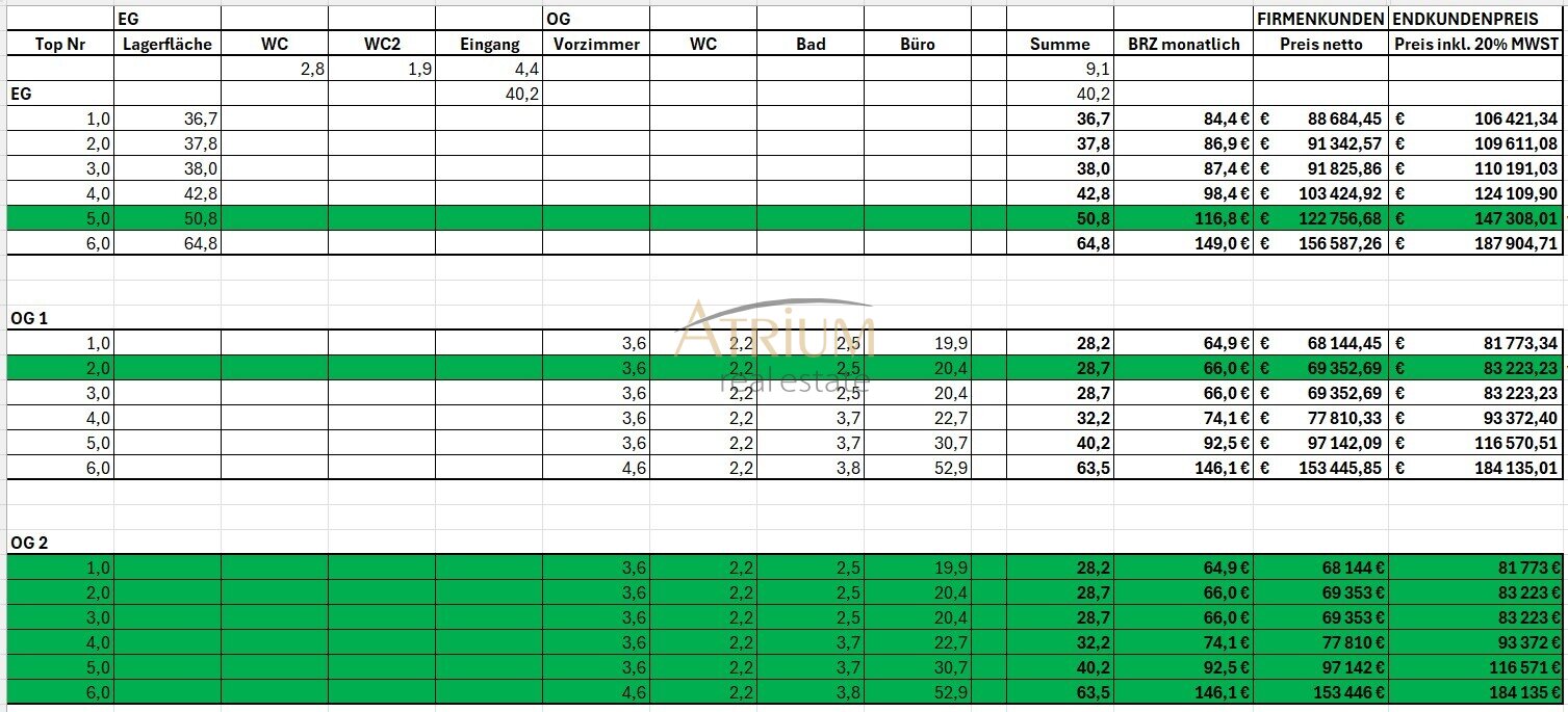 Die ca. 36,70m² große Gewerbefläche, welche beliebig gestaltet werden kann ist mit elektrischen Einfahrtstor, Eingangstür, Teeküche und Sanitäreinrichtung ausgestattet. Egal ob ein Beautysalon, Massagestudio, Lagerfläche oder ein anderes Konzept, hier ist nach Absprache alles möglich. Das moderne Gebäude verfügt über Büros