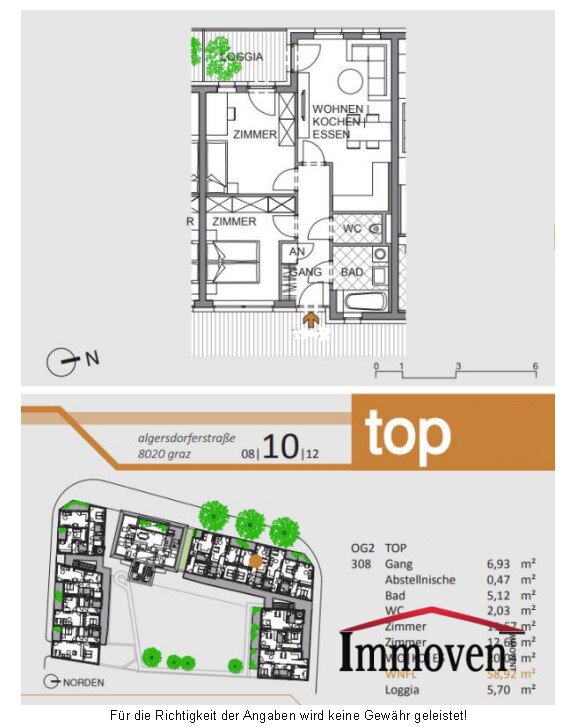Die 3-Zimmerwohnung befindet sich im 2. Obergeschoss (Lift vorhanden) und bietet eine Nutzfläche von ca. 65m².