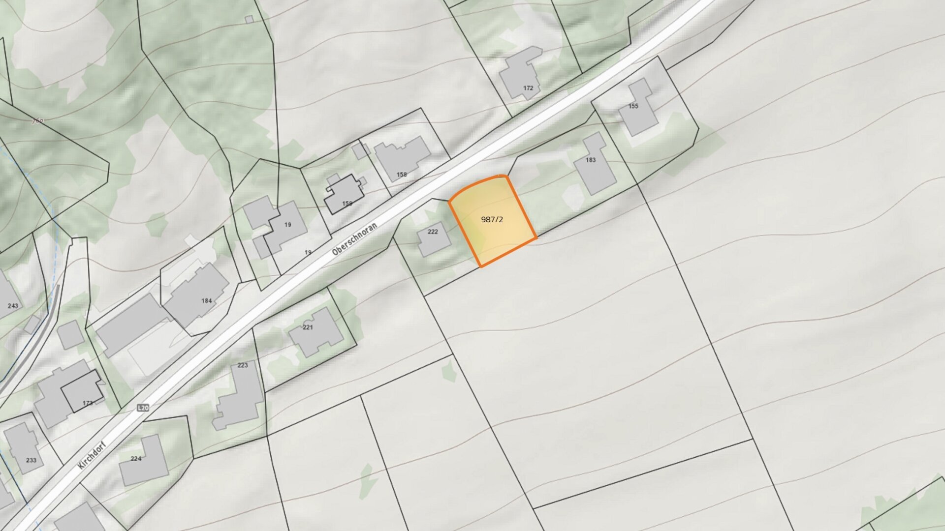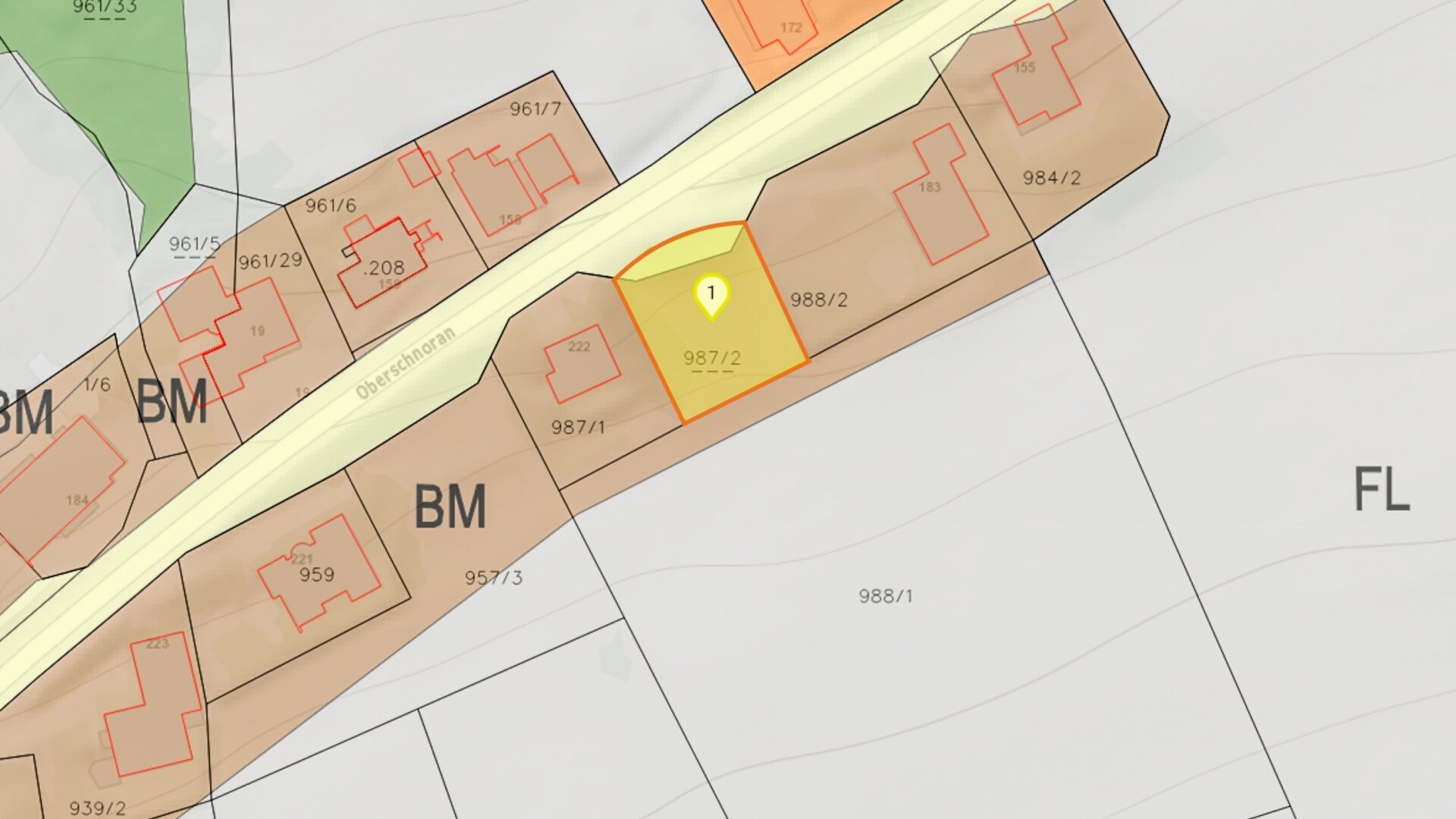 Das Grundstück befindet sich im Ortsteil Oberschorran in der Gemeinde Doren. Die Lage bietet eine herrliche Aussicht auf die Bergwelt des hinteren Bregenzerwaldes mit Blick auf die Damülser Mittagsspitze.