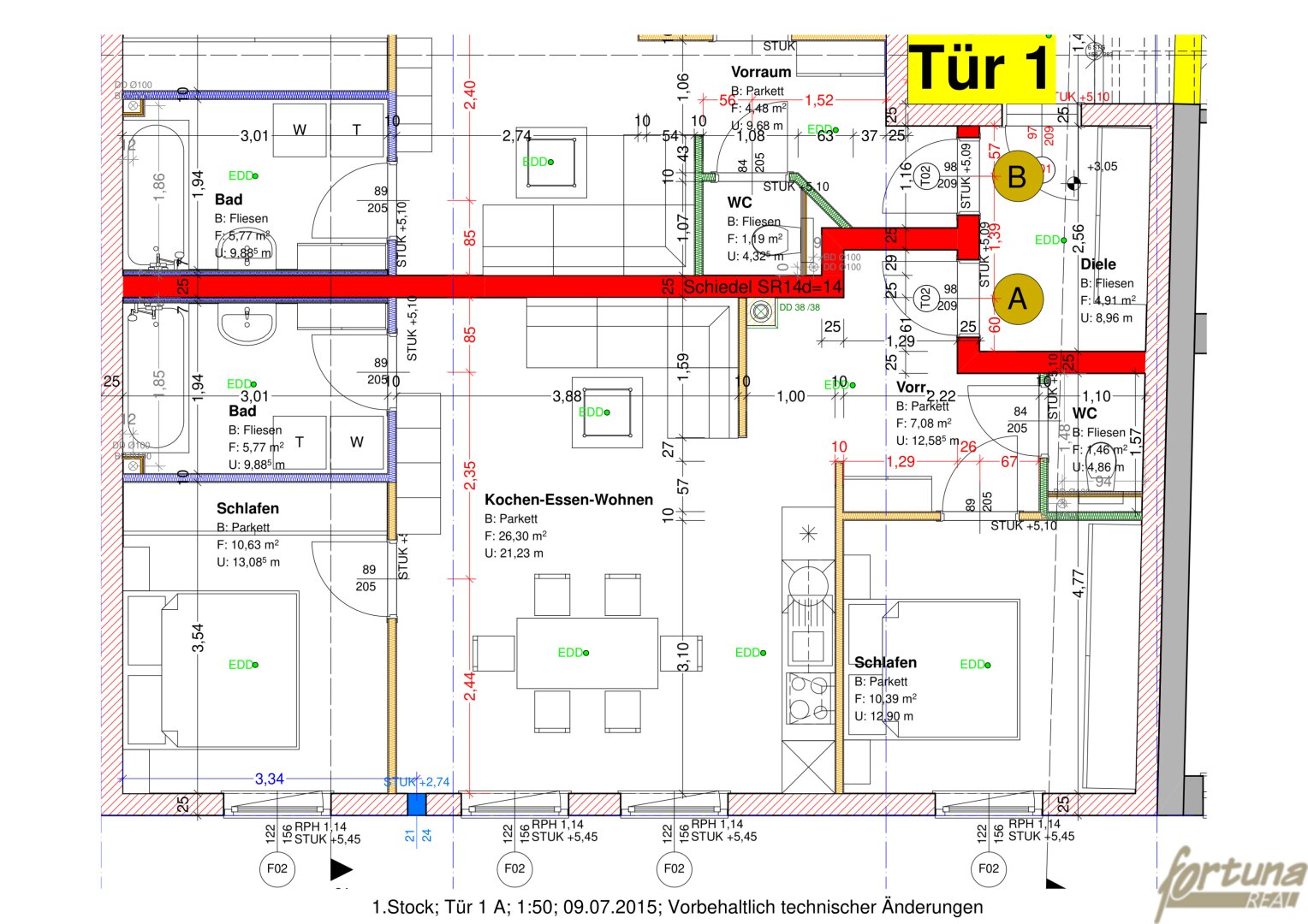 Die Wohnung erstreckt sich über drei lichtdurchflutete