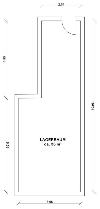 * ebenerdige Lagerfläche, erreichbar über eine Metalltüre (Durchgangsbreite ca. 90 cm) direkt vom Freien