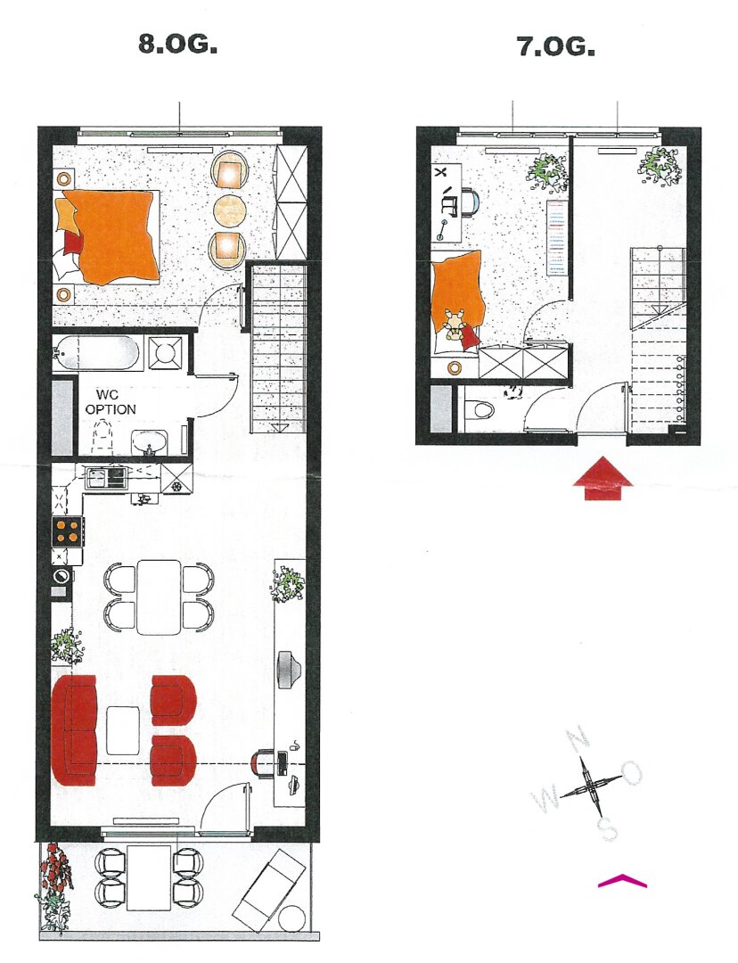 Diese lichtdurchflutete Maisonette, gelegen im 7. und 8. Lift-Stock, ist auf der Suche nach neuen Mietern, die das Besondere lieben! Die Wohnung ist mit einer modernen DAN-Einbauküche, einem begehbaren Kleiderschrank mit Glas-Schiebetüren im Hauptschlafzimmer und einem praktischen Schuhkasten im Vorraum, sowie Balkon Möbeln