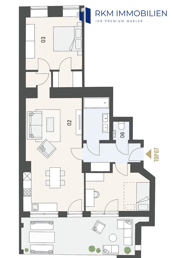 Mit einer großzügigen Fläche von 72,43 m² und drei hellen, freundlichen Zimmern ist diese