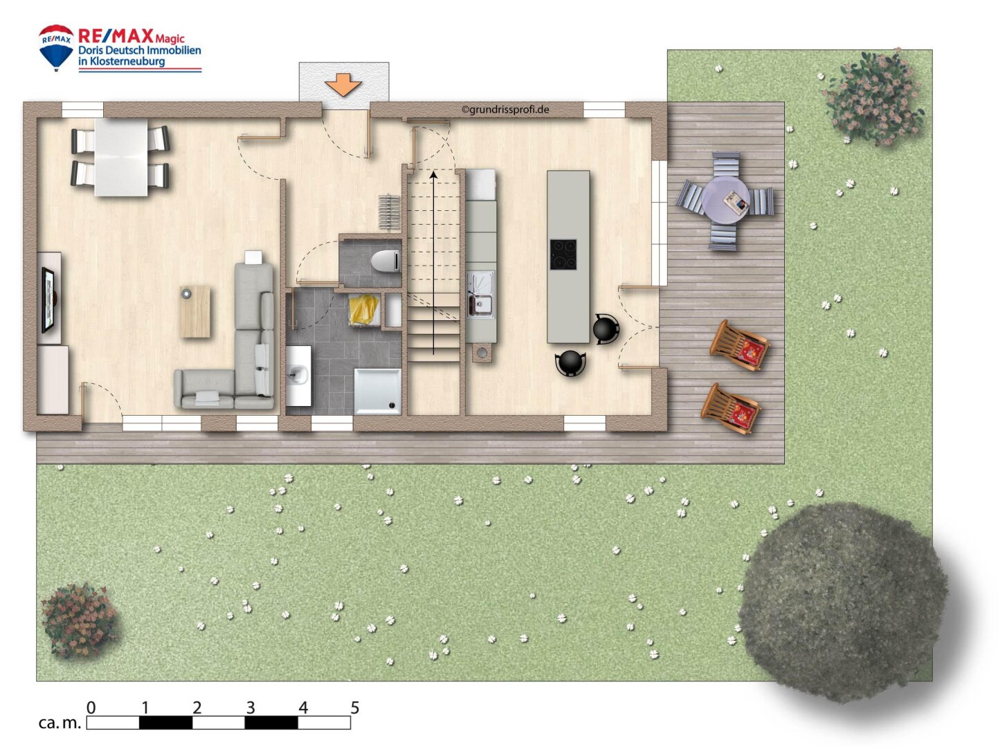 Der Grundriss ist großzügig, die Ausrichtung ideal – west- und südwestseitig mit Sonne bis in den Abend. Der Garten ist für Wiener Verhältnisse überdurchschnittlich groß und bietet uneinsehbare Privatsphäre