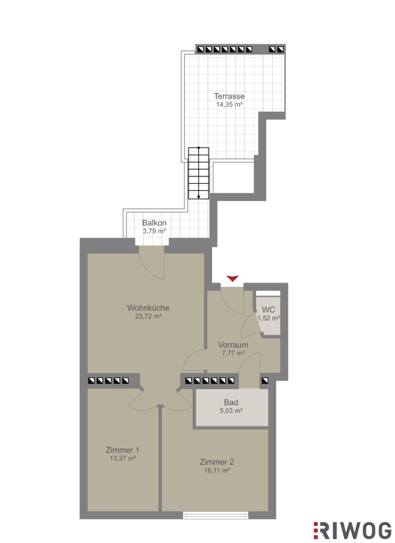 – Wohnküche mit Ausgang auf die Dachterrasse