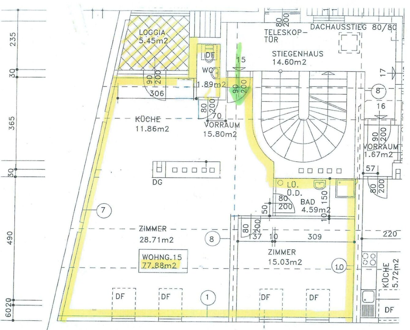 Die Wohnung bietet auf ca. 78 m² einen komplett offenen Wohnbereich (ca. 56 m²) mit einer topmodernen Einbauküche.