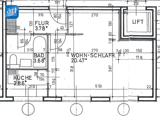 Ruhige, helle und geschmackvoll renovierte (hochwertiger Vinyl-Boden, Bad, Küche …) Garconniere im 5. Stock (Personen-Lift vorhanden), die vor allem aufgrund ihrer gelungenen Raumaufteilung ein hohes Maß an Wohn-Qualität bietet bzw. die Wohnung größer erscheinen lässt, was die 31 m2 vermuten lassen. Vom Vorraum gelangt man direkt ins Badezimmer und in den Schlaf-/Wohnbereich.