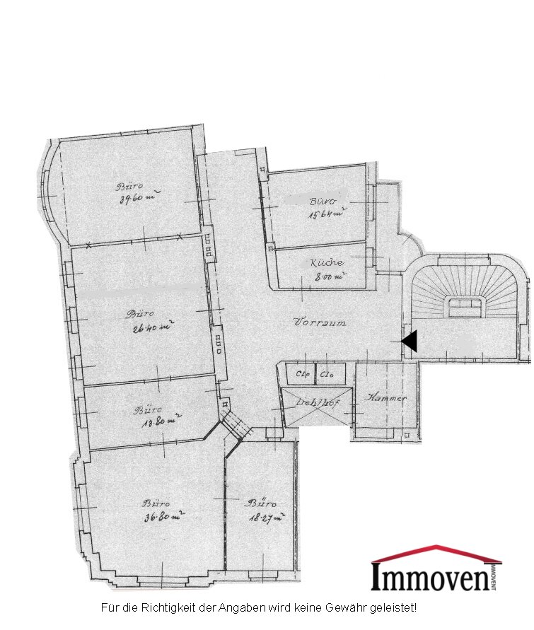 Das Altbaubüro befindet sich in einem traditionellen Wiener Zinshaus, im 2. Obergeschoss (Lift vorhanden) und bietet eine Nutzfläche von ca. 209 m². Die Büroräumlichkeiten sind ausgestattet mit hohen Decken, klassischen Flügeltüren und einem Parkettboden. Die großen Doppelfenster sorgen für ein