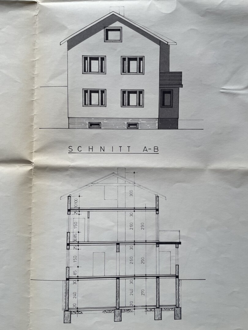Es gibt ein Wohnhaus aus 1976 (Erstbesitz Basis 1948) mit ausgebautem Erdgeschoß und ausbaubarem Obergeschoß sowie einem unausgebauten Rohdachboden.