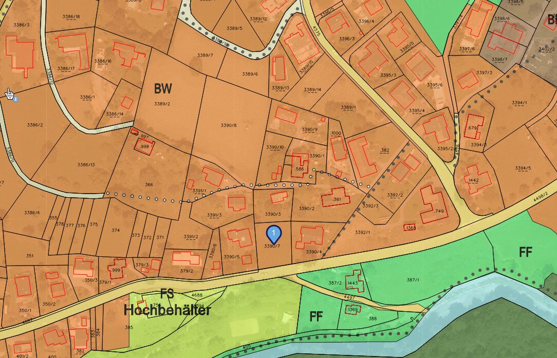 Dieses Traumgrundstück ist als Baufläche Wohngebiet (BW) gewidmet. Mit der Größe von 824 m² eignet es sich hervorragend für ein repräsentatives „Häuschen“.